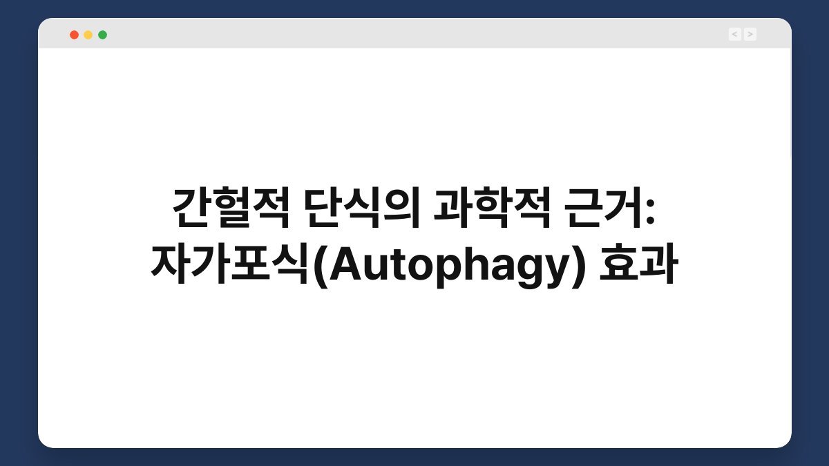 간헐적 단식은 단순히 식사 시간을 제한하는 것을 넘어선 복잡한 생리적 변화를 유도하는 식단 패턴입니다. 이 방식의 깊이 있는 건강 증진 효과는 주로 세포 수준에서 일어나는 자기 정화 및 재생 과정인 자가포식(Autophagy)의 활성화에 기인합니다. 자가포식은 손상된 세포 구성 요소를 제거하고 새로운 건강한 구성 요소로 대체하여 세포 기능을 최적화하는 필수적인 메커니즘입니다. 따라서 {간헐적 단식의 과학적 근거: 자가포식(Autophagy) 효과}를 이해하는 것은 간헐적 단식의 치료적 잠재력을 온전히 파악하는 데 결정적인 역할을 합니다. 이 글을 통해 독자들은 자가포식의 상세한 메커니즘, 단식에 의한 활성화 원리, 그리고 이로 인한 광범위한 건강상의 이점들을 심층적으로 이해하게 될 것입니다.