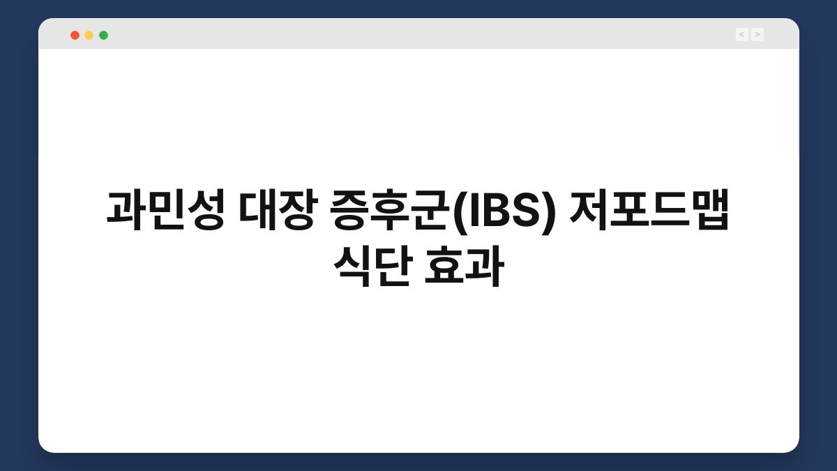 과민성 대장 증후군(IBS) 저포드맵 식단 효과의 과학적 근거