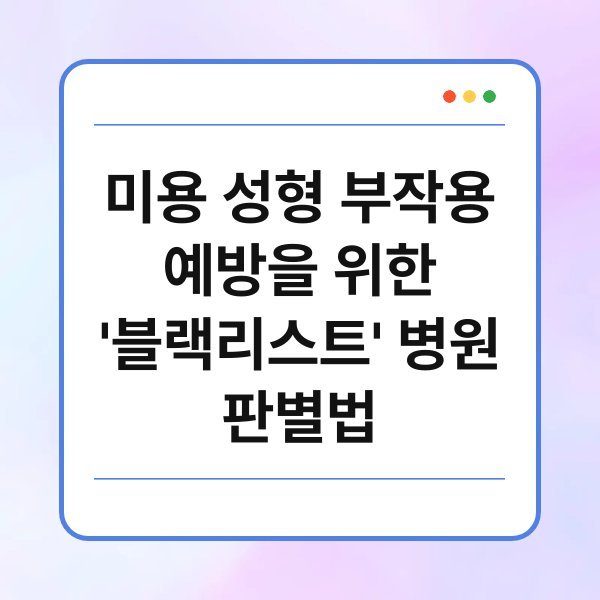 미용 성형 부작용 예방을 위한 ‘블랙리스트’ 병원 판별법은 환자들이 안전하고 만족스러운 결과를 얻기 위해 반드시 숙지해야 할 핵심 정보입니다. 이 키워드는 단순히 의료 사고를 피하는 것을 넘어, 성형 수술 결정 과정에서 발생할 수 있는 잠재적 위험 요소를 사전에 인지하고 현명하게 대처하는 포괄적인 지침을 의미합니다. 수많은 정보 속에서 신뢰할 수 있는 병원과 그렇지 않은 병원을 구별하는 기준을 제시하며, 의료 소비자의 주체적인 판단력을 강화하는 데 목적이 있습니다. 결국 이 글을 통해 독자들은 의료진의 전문성부터 병원의 안전 시스템, 상담 과정의 투명성, 사후 관리의 책임감에 이르기까지, 성형 수술을 결정하기 전 반드시 확인해야 할 실질적인 판별 기준들을 명확히 이해하게 될 것입니다.