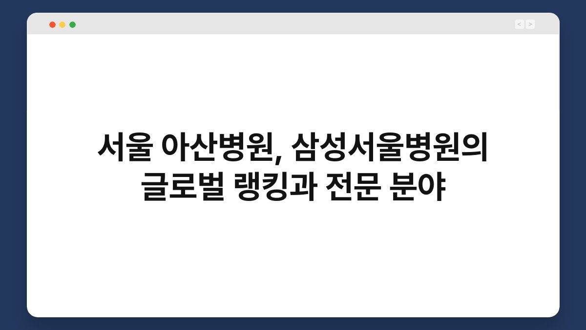서울 아산병원, 삼성서울병원의 글로벌 랭킹과 전문 분야