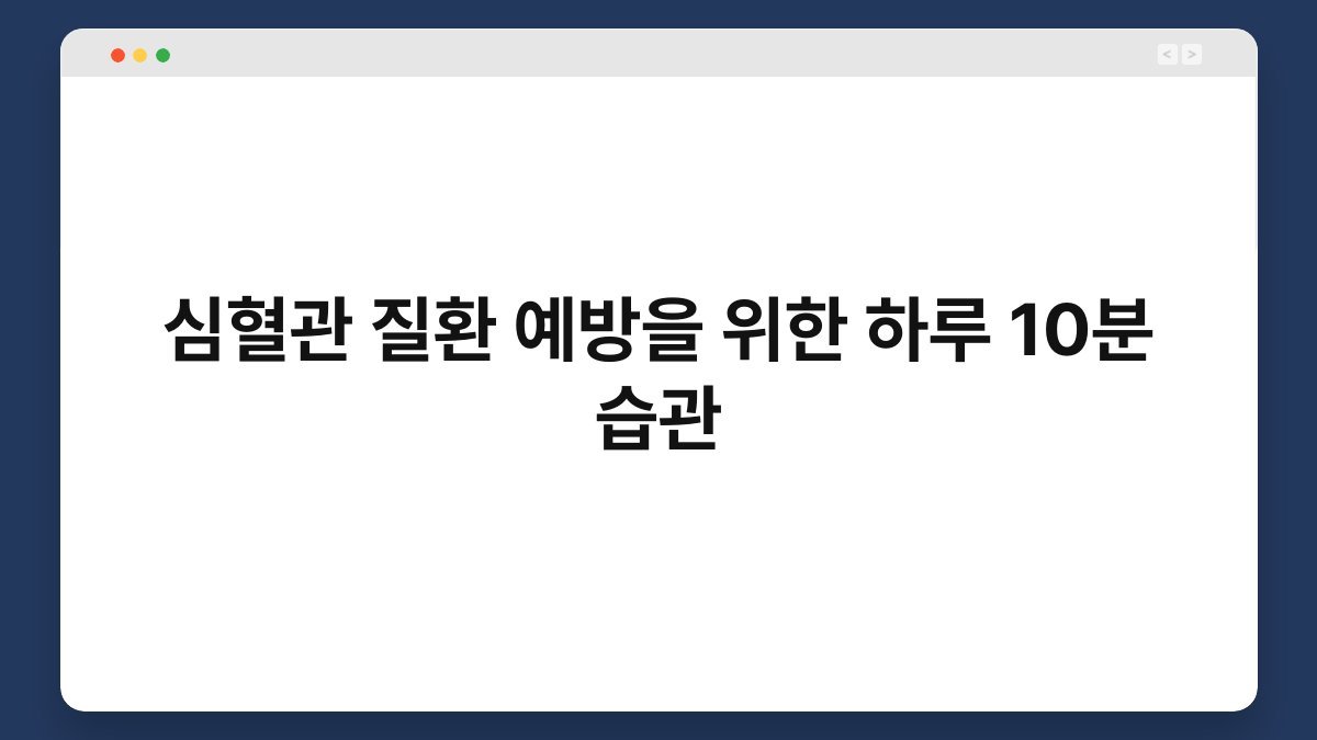 심혈관 질환은 현대인의 건강을 위협하는 심각한 문제로 자리 잡았습니다. 이러한 질환은 고혈압 고지혈증 당뇨 비만 등 다양한 위험 요인과 밀접하게 연관되어 있으며 심장마비 뇌졸중과 같은 치명적인 결과를 초래할 수 있습니다. 하지만 꾸준하고 작은 노력을 통해 충분히 예방하고 관리할 수 있습니다. {심혈관 질환 예방을 위한 하루 10분 습관}은 바쁜 일상 속에서도 건강을 지킬 수 있는 실용적이고 효과적인 방법들을 제시합니다. 이 글을 통해 독자 여러분은 심혈관 건강을 증진시키는 다양한 10분 습관들을 배우고 이를 일상에 성공적으로 통합하는 구체적인 전략들을 알게 될 것입니다.