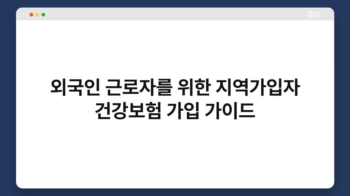 외국인 근로자를 위한 지역가입자 건강보험 가입 가이드