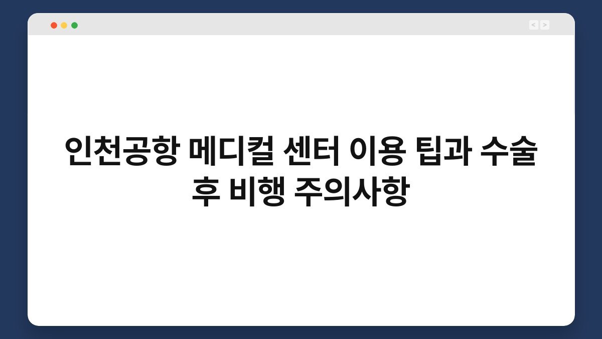 안전한 수술 후 비행을 위한 종합적인 인천공항 메디컬 센터 이용 팁
