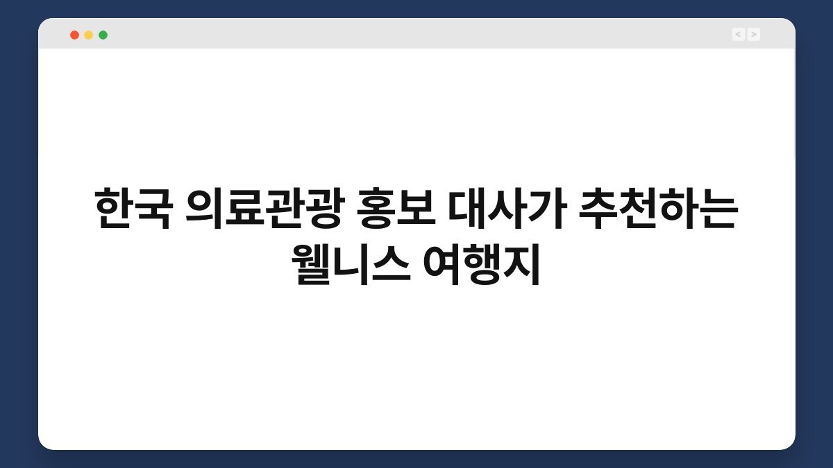 {한국 의료관광 홍보 대사가 추천하는 웰니스 여행지}는 단순한 관광을 넘어 신체적 정신적 건강 증진을 목표로 하는 특별한 여정을 의미합니다. 이는 한국의 우수한 의료 기술과 함께 자연 치유 문화 전통 의학 체험 현대적인 스파 및 명상 프로그램이 조화롭게 어우러진 곳들을 아우릅니다. 방문객들은 세계적 수준의 의료 서비스를 받으면서도 아름다운 자연 속에서 휴식을 취하고 정신적 평화를 얻을 수 있습니다. 또한 각 지역의 고유한 문화와 접목된 다채로운 웰니스 활동들을 통해 몸과 마음의 균형을 되찾는 경험을 하게 됩니다. 이 글을 통해 독자 여러분은 한국 의료관광 홍보 대사가 엄선한 최고의 웰니스 여행지들을 상세히 알아보고 각 지역이 제공하는 독특한 치유 프로그램과 매력을 발견하게 될 것입니다.