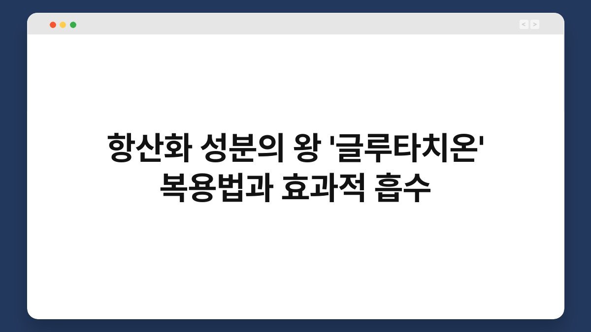 항산화 성분의 왕 ‘글루타치온’의 효과를 높이기 위해 무조건적인 고용량 섭취를 고집하기보다는, 흡수율이 높은 형태를 선택하거나 비타민 C와 같은 보조 영양소와 함께 섭취하여 효율성을 높이는 방법을 고려하는 것이 더욱 현명합니다. 과유불급이라는 말처럼, 적절한 양을 꾸준히 섭취하는 것이 가장 안전하고 효과적인 복용법입니다.