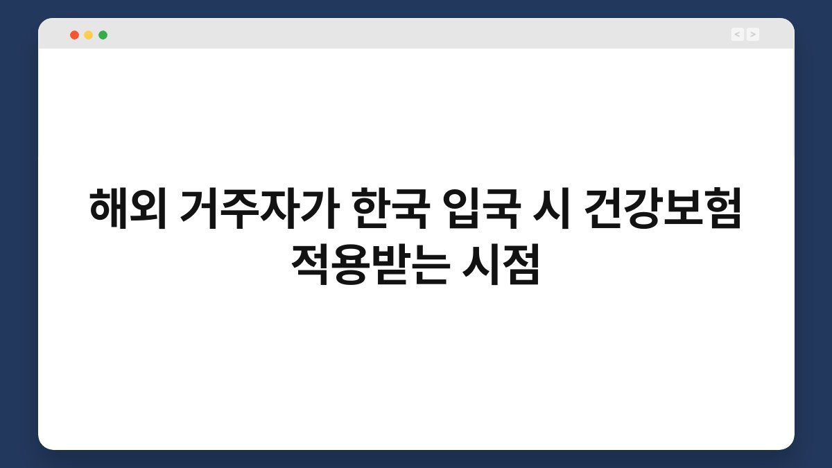 ⏳ 해외 거주자의 한국 건강보험 적용 시점은 체류 자격과 조건에 따라 달라집니다.