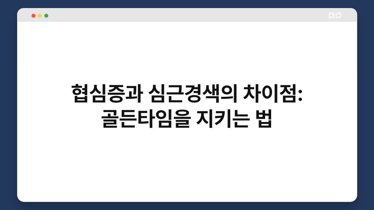 어느 날 갑자기 찾아오는 가슴 통증은 우리를 공포에 떨게 합니다. 이 통증이 단순한 소화불량일지 아니면 심각한 심장 질환의 신호일지 판단하기란 쉽지 않죠. 특히 협심증과 심근경색은 유사한 증상 때문에 혼동하기 쉽지만, 이 둘을 구분하고 적절하게 대처하는 것은 생명을 좌우할 만큼 중요합니다. 오늘은 이 두 질환의 명확한 차이점을 알아보고, 위급 상황에서 생명을 살리는 ‘골든타임’을 어떻게 지켜야 하는지 자세히 살펴보겠습니다. 이 글을 통해 소중한 심장 건강을 지키는 데 필요한 지식과 지혜를 얻으시길 바랍니다.