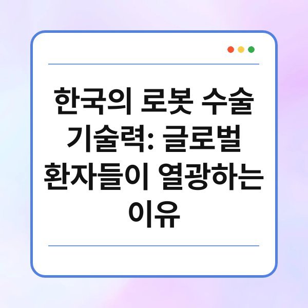 한국의 로봇 수술 기술력: 글로벌 환자들이 열광하는 이유